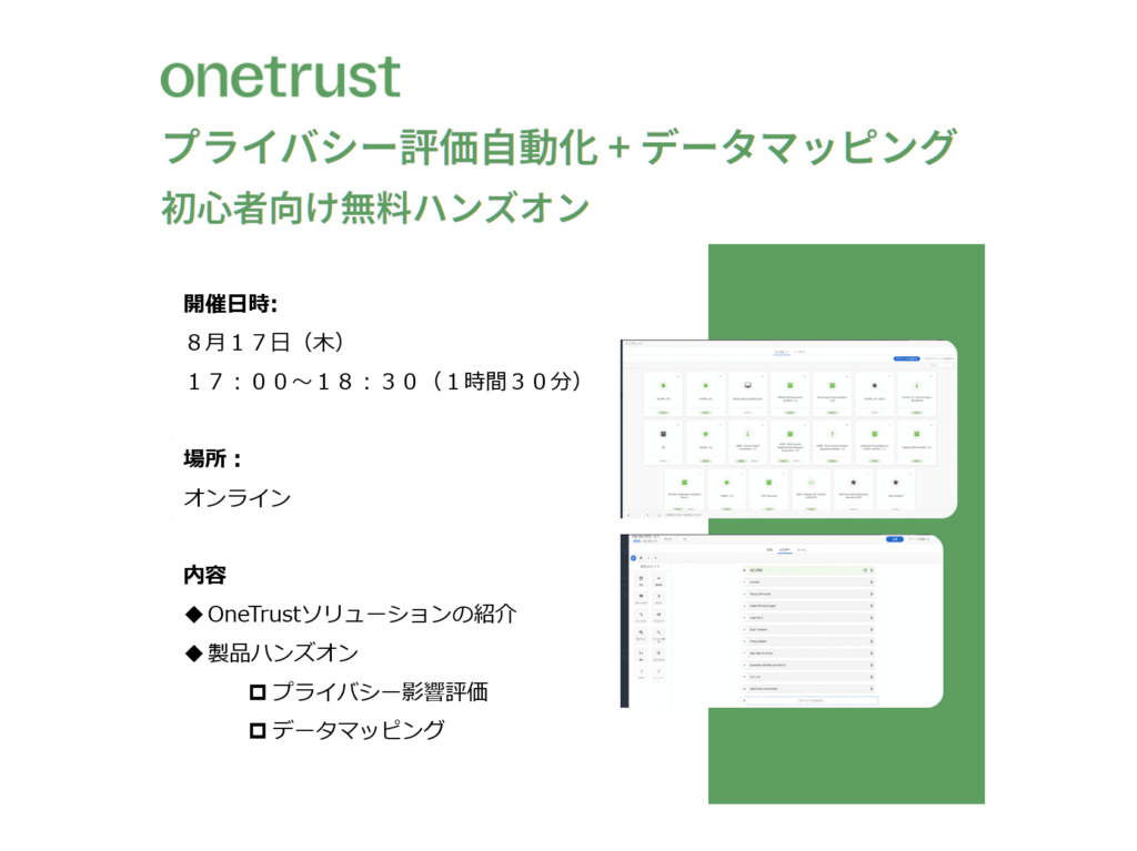 OneTrust初心者向けハンズオントレーニング「プライバシー評価自動化・データマッピング入門」毎月定期開催のお知らせ