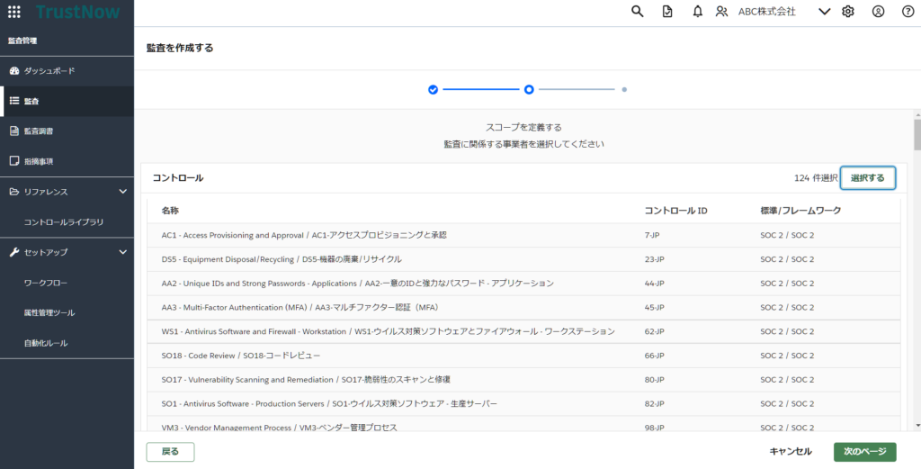 法規制の要求事項を先取りするために内部監査をスケジュールします。監査対象となるスコープについて、フレームワーク、スタンダード、コントロールごとに簡単に設定することが可能です。スタンダード、事業体、ポリシー、プロセス、リスク、管理、アセットにまたがる関係を特定します。