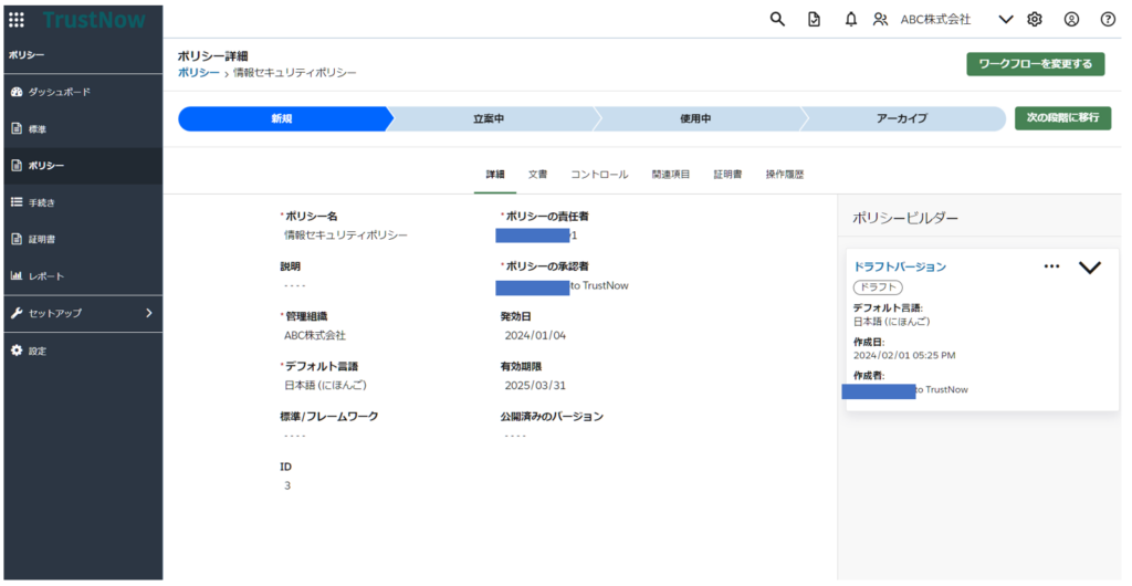 ポリシーの有効期限を設定して、準拠していないとされる既存のポリシーにフラグを立て、当該ポリシーに対してレビューのためのプロセスを自動的に開始します。ポリシー、手順、またはスタンダードについて他のユーザーと共有するために、常に最新のバージョンへのリンクを生成し、プライベートドメイン(要SSO)とパブリックドメインで共有することが可能です。
