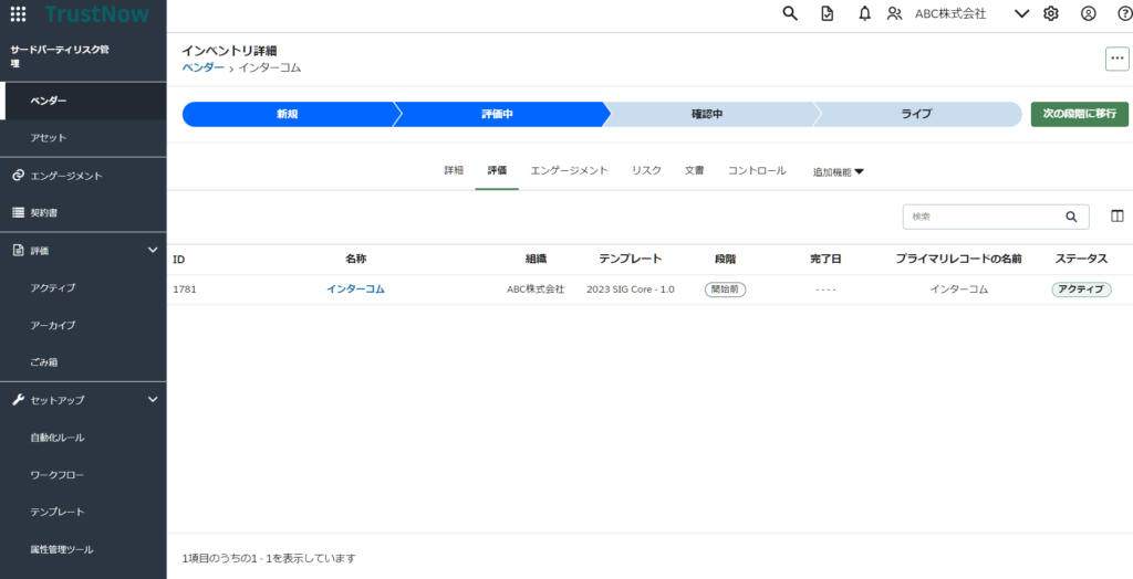 サードパーティが危険と思われる場合、すぐに検知することが可能です。適切なタイミングで適切な手順が実行され、適切な人材が評価プロセスに関与するようにサードパーティのオンボーディングプロセスについてワークフローを構築することが可能です。アセスメントのための質問票はサードパーティの回答に応じて表示される質問内容が変更され、最も関連性の高い質問のみを表示します。