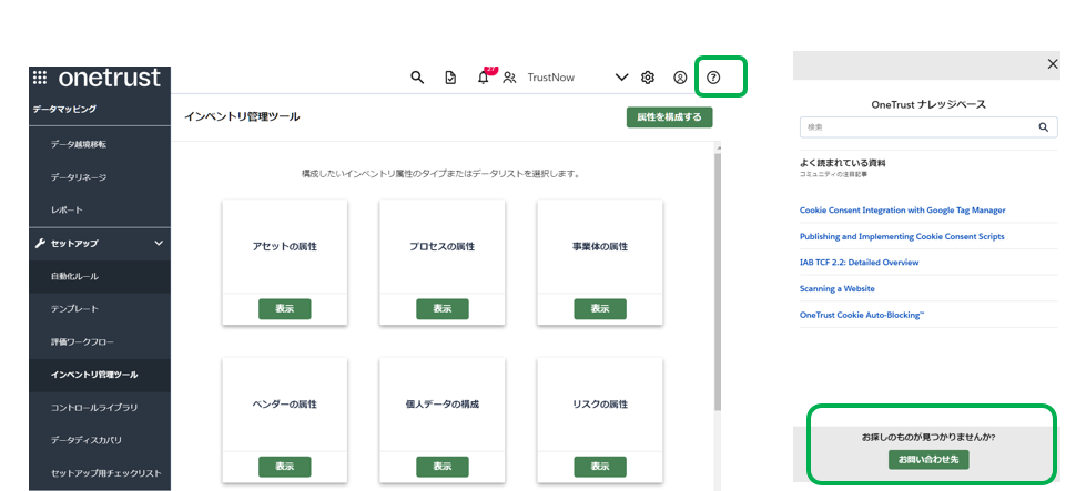 OneTrustでは、画面右上の「?」ボタンから、サポートへ問い合わせすることが可能です。