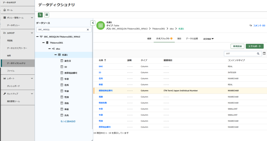 データディクショナリを使用すると、Microsoft SQL Serverのどのテーブルのどのカラムに個人情報が含まれているかを容易に把握できます。