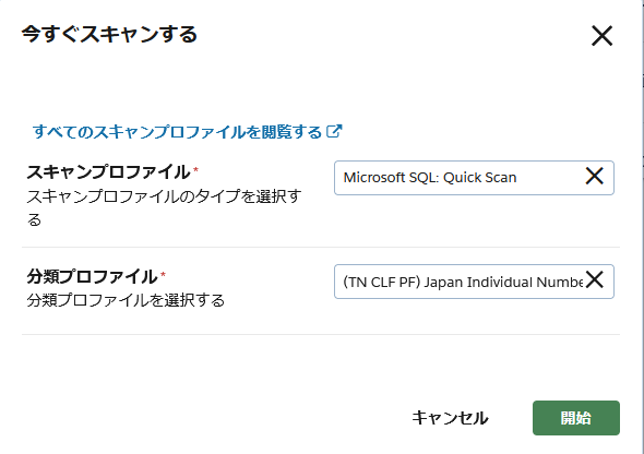 検出の条件(分類プロファイル)とデータソースの設定が完了したら、いよいよスキャンを実行します。