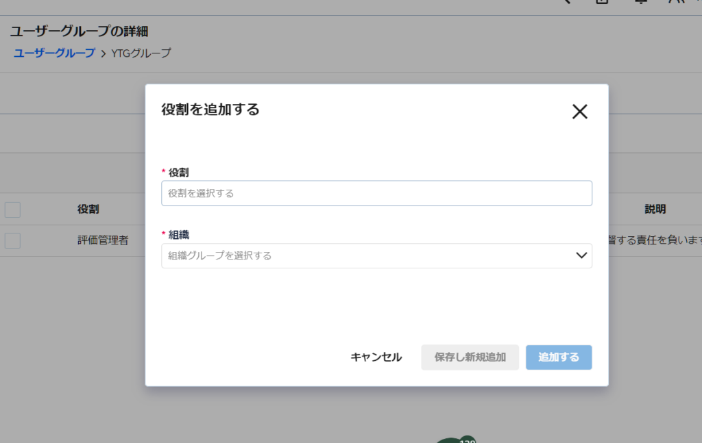 もし、複数の組織を割り当てたい場合、追加でロールと組織の割り当てを行います。(それぞれの組織に対する権限がプラスでユーザーやユーザーグループへ追加されます。)