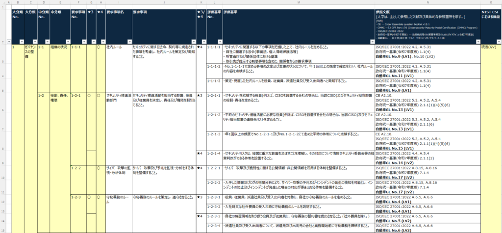 このセクションでは、経済産業省サプライチェーン対策評価基準を、Vantaの強力な監視機能に結びつけるための、具体的なカスタムフレームワークの構築手順とその意義を解説します。今回は、経済産業省の「サプライチェーン強化に向けたセキュリティ対策評価制度に関する制度構築方針(案)」に付随する、「別添 ★3・★4要求事項及び評価基準案(Excel形式)」を使ってカスタムフレームワークを作ってみます。