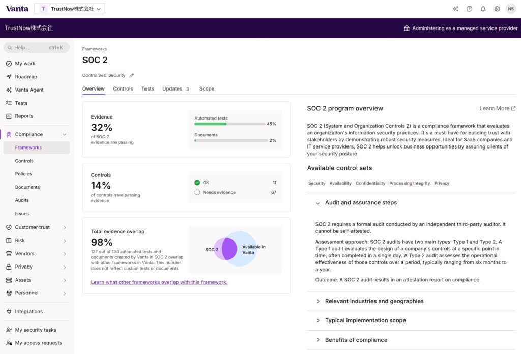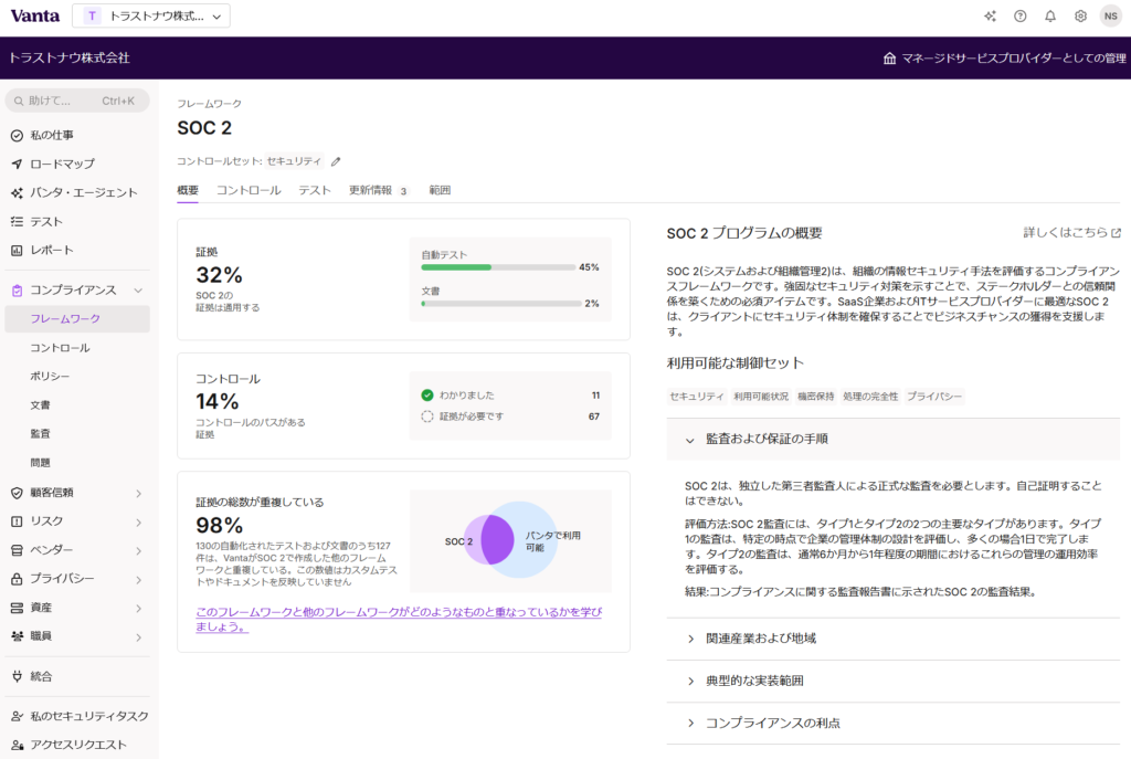 Vanta の使い方(基礎編)~ SOC 2 への準拠 ~ 概要