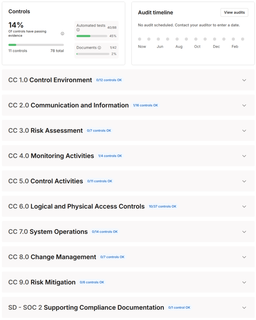 では、さっそく Vanta を使って SOC 2 への準拠を進めていきましょう。