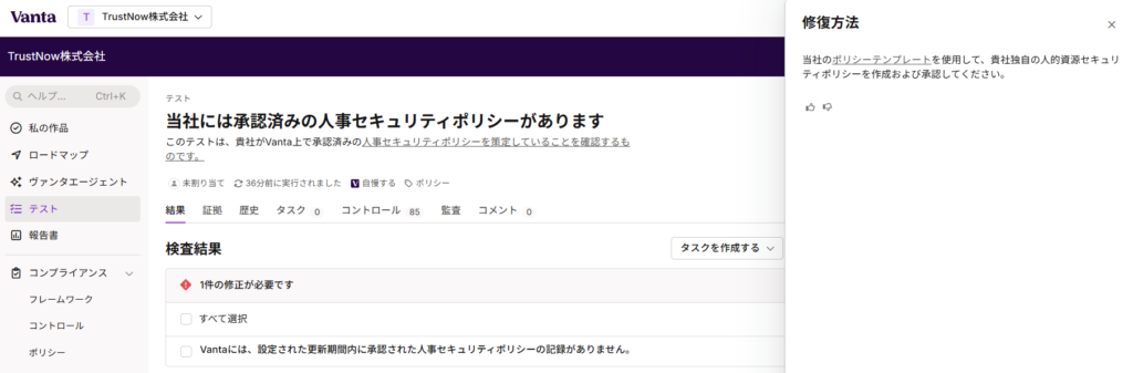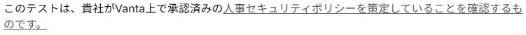 まずは、テストの項目である「当社には承認済みの人事セキュリティポリシーがあります」です。