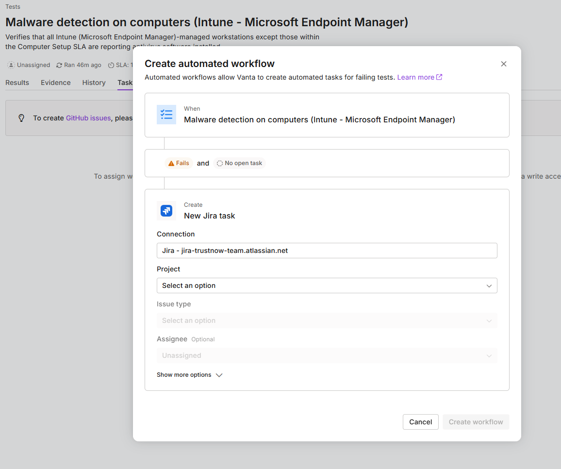 アンチウイルスソフトが「有効」になっているかを定期的にテストし、無効化された端末があれば事前に設定したJiraのworkflowに従う等の方法でチケットを発行します。